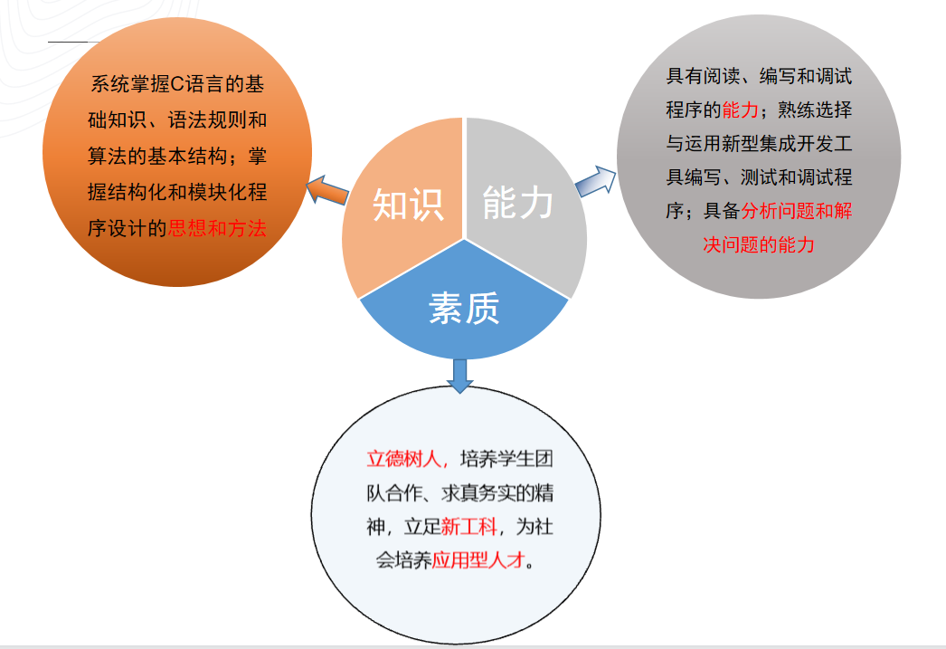 该课程具有扎实的学科基础,发展分为三个阶段:一是自二十世纪90年代开始的传统程序设计阶段;二是2005年实施的信息技术融合阶段;三是2016年开始的混合式教学阶段。课程重点解决三个关键问题: