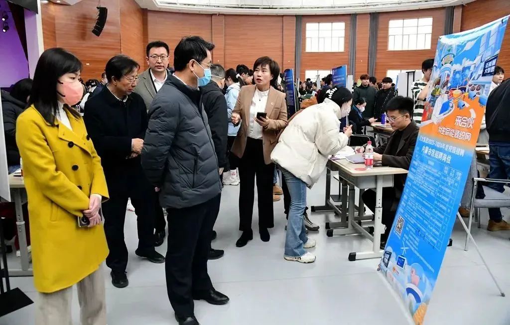 3月24日,由我校招生就业处主办,yl6809永利官网集团、化学与环境科学学院、物理与电子信息学院、地理科学学院、心理学院、历史文化学院、工艺美术学院承办的“奋进新征程 筑梦向未来”yl6809永利集团2023年新工科、新文科专场人才招聘会在盛乐校区学生事务中心二楼多功能演播大厅举行。校党委副书记张海峰及相关部门、学院负责同志现场参加活动,我院党委书记玉柱、副书记、副院长沙金,毕业生辅导员与用人单位及毕业生亲切交流。计算机学院共有来自29家单位招聘岗位数658个,共有287人有签约意向并投递简历,其中本科生266人,研究生21人。