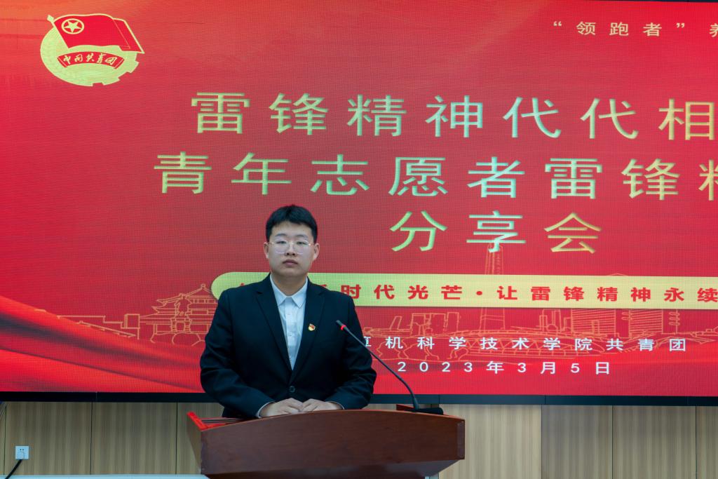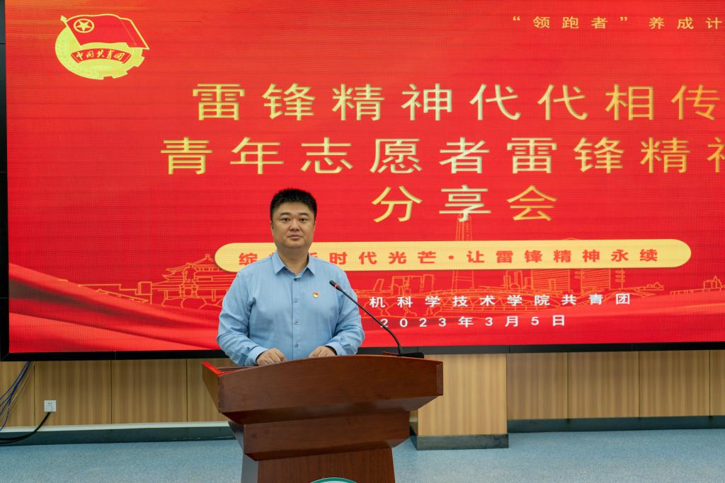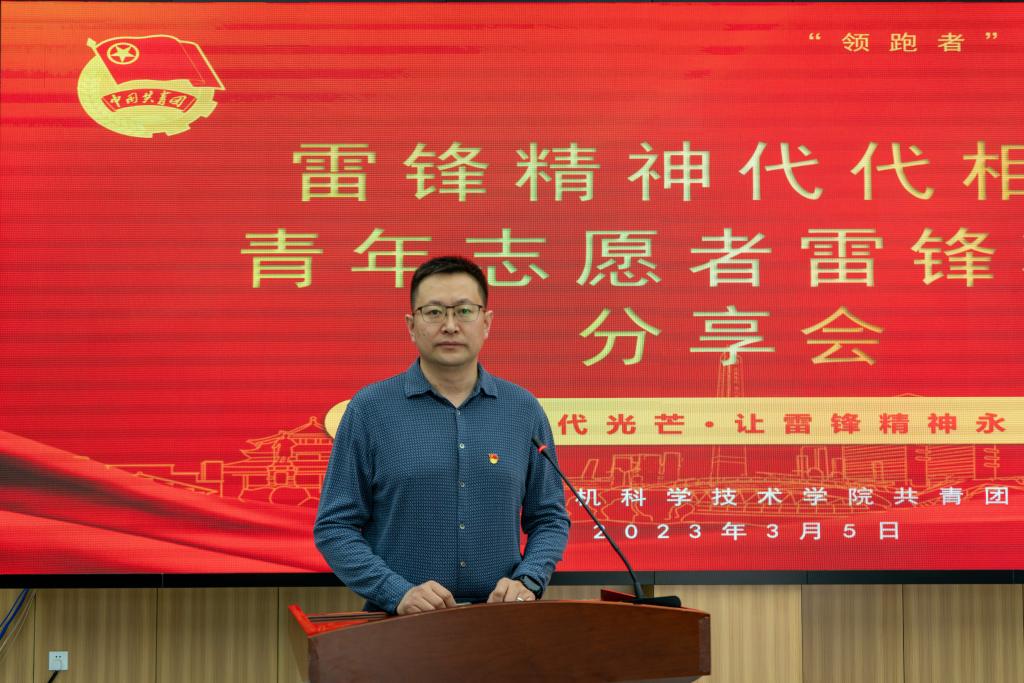 学院党委副书记、副院长沙金进行分享,他指出:雷锋是一个光荣的名字,雷锋同志用其短暂的一生,树立起了一座不朽的思想道德丰碑。实践证明,无论时代如何变迁,雷锋精神永不过时。启动“学雷锋”志愿服务系列活动,就是要号召激励广大青年学生自觉学习贯彻毛泽东等老一辈革命家为雷锋同志的题词精神,认真学习贯彻习近平总书记重要指示精神,大力传承和弘扬新时代雷锋精神,努力让学习践行雷锋精神在我院蔚然成风,争做为新时代党和人民伟大事业不懈奋斗、永不生锈的螺丝钉,并将个人价值同岗位需要结合起来,将个人志向同祖国发展和时代大势结合起来,努力实现德智体美劳全面发展。