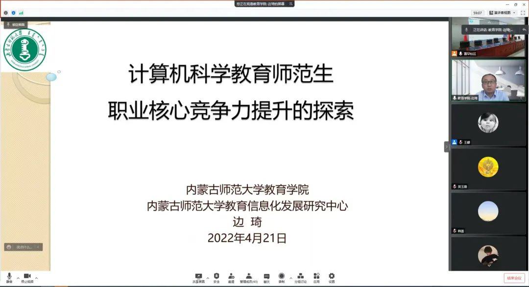4月21日,yl6809永利官网集团邀请1997届优秀毕业生、现教育学院副院长边琦教授为全院教职工进行了学科建设专题讲座。讲座采用线上线下相结合的形式展开,由院长林民教授主持,主题为“计算机科学教育师范生职业核心竞争力提升的探索”。