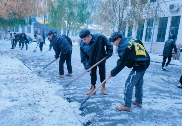 “领跑者计划”学员们不畏严寒,不断前行,他们甩开膀子,挥动手中的工具,个个干劲十足,一派热火朝天的景象:有的弯腰奋力铲雪,有的俯身清理雪堆,很快就将部分路面清扫干净。同学们用实际行动,让严寒的冬日变得格外温暖。