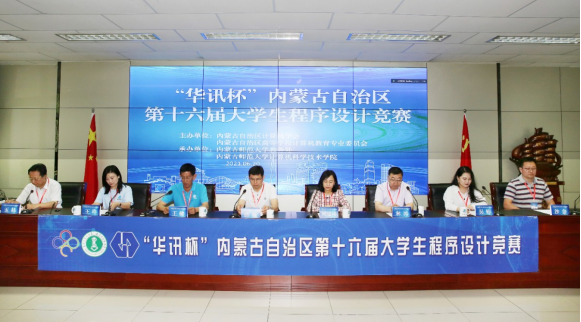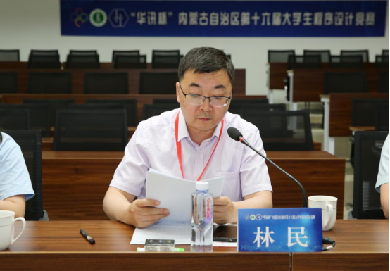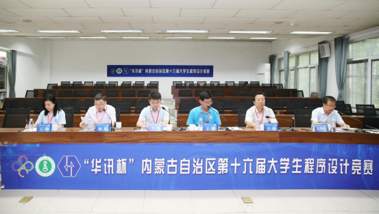 yl6809永利集团教务处处长韩巍教授、内蒙古自治区计算机学会理事长、内蒙古大学计算机学院院长周建涛教授、内蒙古自治区高等学校计算机教育专业委员会秘书长、内蒙古农业大学计算机与信息工程学院王健教授、大赛冠名赞助商华讯高科股份有限公司常务副总裁刘璐先生、品牌部经理王玲女士、品牌部主管吴婷女士、yl6809永利官网集团党委书记玉柱副教授、yl6809永利官网集团院长林民教授、yl6809永利官网集团党委副书记、副院长沙金、网络与软件工程系主任孟繁军副教授出席本次大赛。