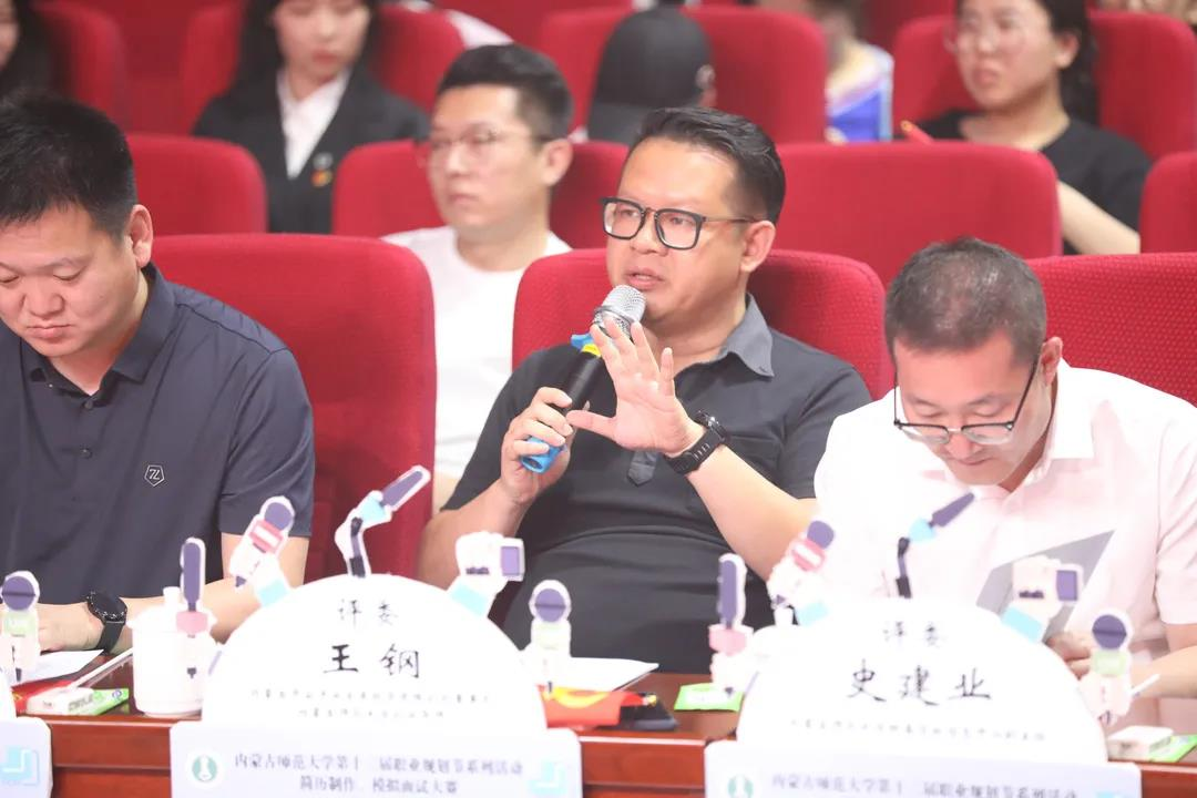 yl6809永利集团教务处处长韩巍、招生就业处处长许琳、yl6809永利官网集团院长、党委副书记林民、党委宣传部副部长黄鑫、研究生院副院长王利、校团委副书记那日苏、yl6809永利官网集团党委副书记、副院长沙金出席本次大赛。联想集团内蒙分公司教育行业总经理吴丹、兴业银行呼和浩特支行行长张美玲、内蒙古和林格尔新区组织人事科科长陈雷、yl6809永利集团附属学校信息中心副主任史建业、内蒙古中云产业发展投资有限公司董事长、yl6809永利集团创业导师王钢、新东方呼和浩特学校人力资源部经理王俊婷担任大赛评委。