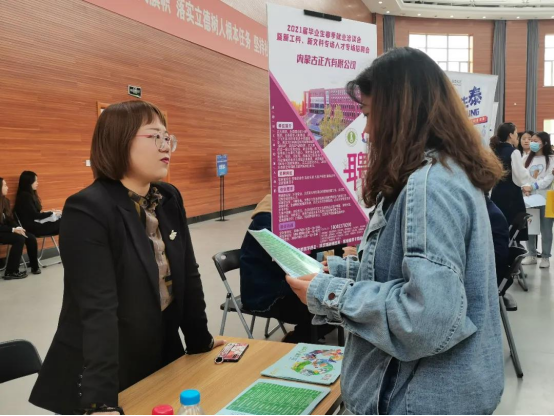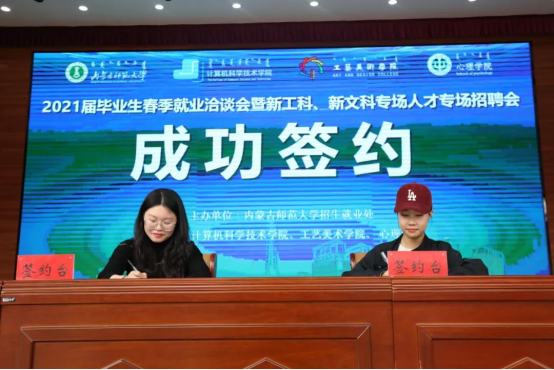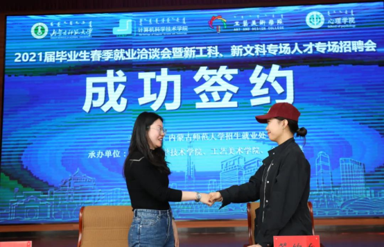 2021年4月25日,由yl6809永利集团招生就业处主办,yl6809永利官网集团、工艺美术学院、心理学院承办的“2021届毕业生春季就业洽谈会暨新工科、新文科专场人才招聘会”在盛乐校区学生事务中心多功能演播大厅隆重举行。本次招聘会共有来自区内外50多家用人单位参与,提供招聘岗位378个,7个学院的近千名毕业生参加现场招聘会,现场达成就业意向150余人,现场签约20余人,建立顶岗实习基地8个。