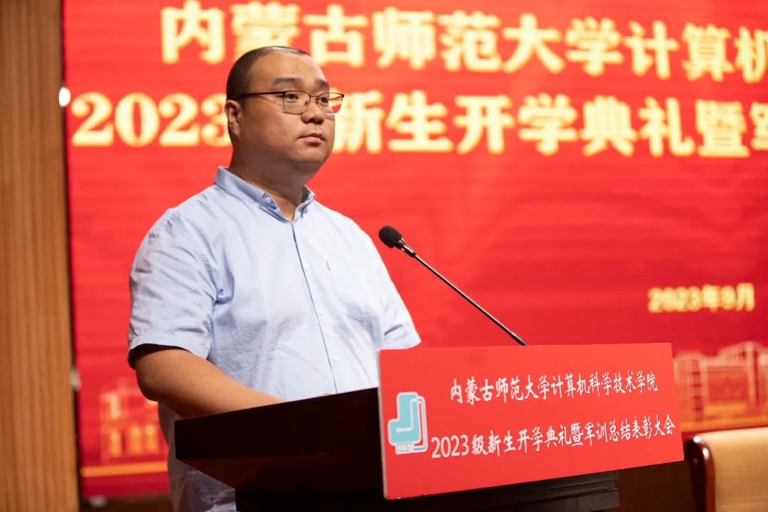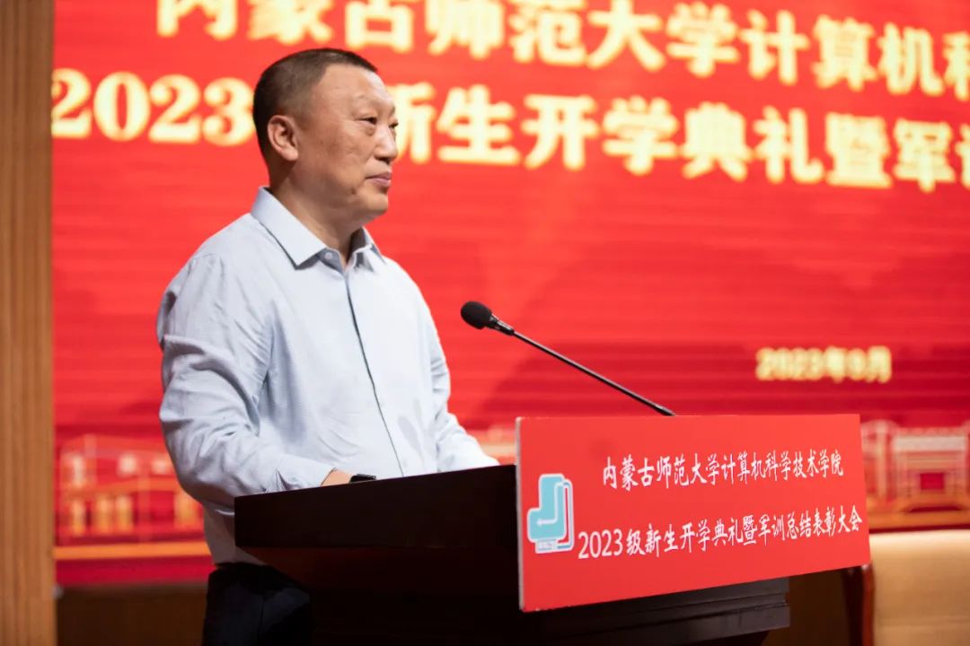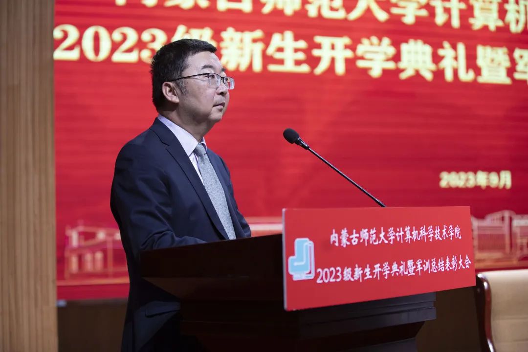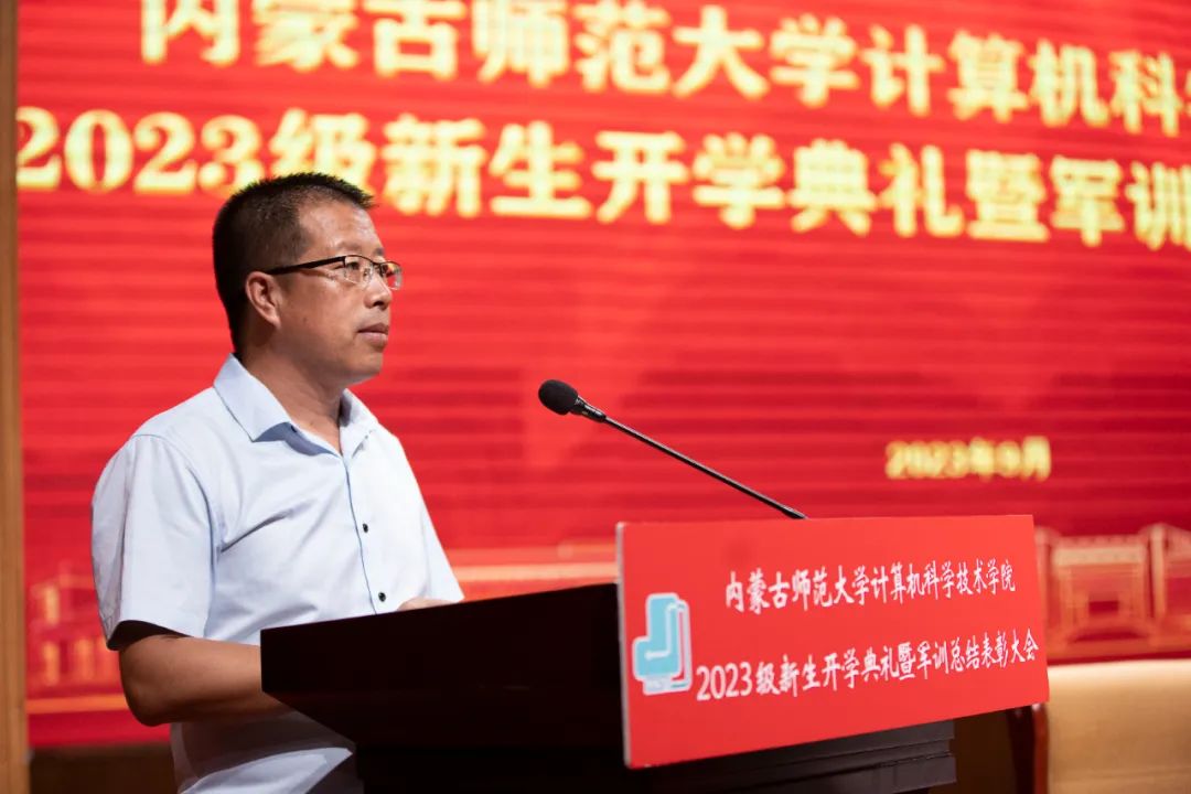 yl6809永利官网集团党委书记王海龙,yl6809永利官网集团党委副书记、院长、博士生导师林民,副院长斯琴图,计算机系主任朝力萌,网络与软件工程系主任孟繁军,副主任葛湘巍、徐行健,数据科学与人工智能系副主任包萨仁娜,全体新生班辅导员以及我院2023级373名本科生和59名研究生出席大会。学院团总支书记赵巍伟主持大会。