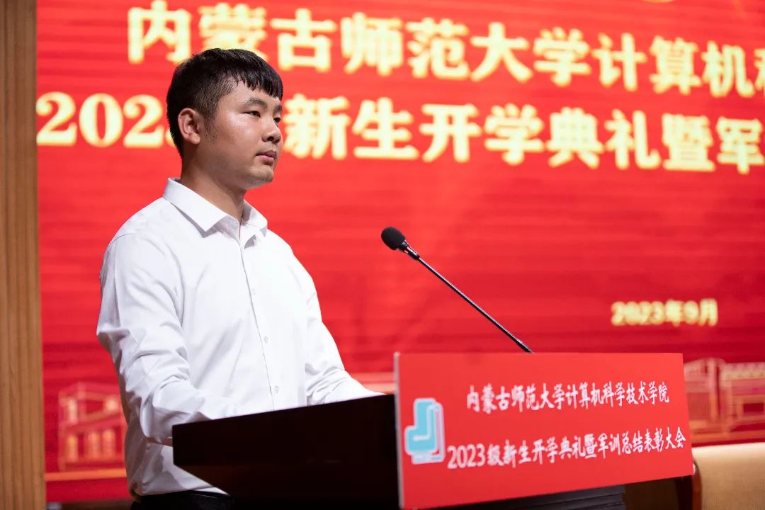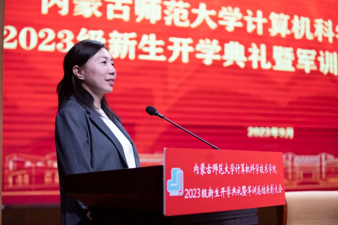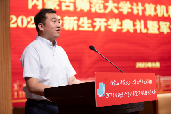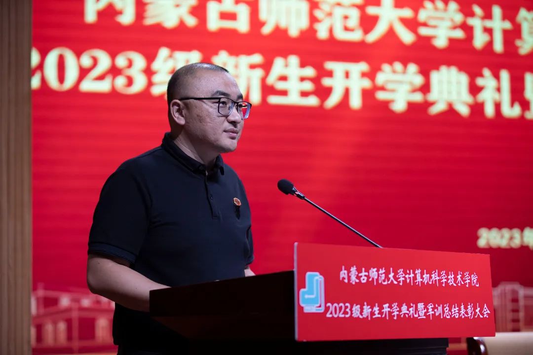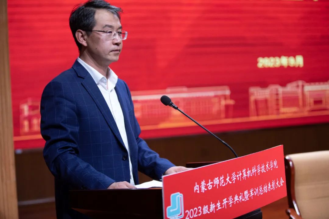 yl6809永利官网集团党委书记王海龙,yl6809永利官网集团党委副书记、院长、博士生导师林民,副院长斯琴图,计算机系主任朝力萌,网络与软件工程系主任孟繁军,副主任葛湘巍、徐行健,数据科学与人工智能系副主任包萨仁娜,全体新生班辅导员以及我院2023级373名本科生和59名研究生出席大会。学院团总支书记赵巍伟主持大会。