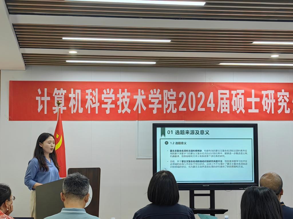 5月23日下午,yl6809永利官网集团2024届计算机科学与技术、课程与教学论(计算机)硕士研究生学位论文答辩会在赛罕校区信息楼举行。根据学院安排,本次设置了三个答辩小组。内蒙古大学孙涛教授担任第一组答辩主席,yl6809永利集团智敏教授、郭改枝教授、殷雁君教授、王春晖副教授、柳林副教授担任计算机科学与技术第一组答辩委员会成员。