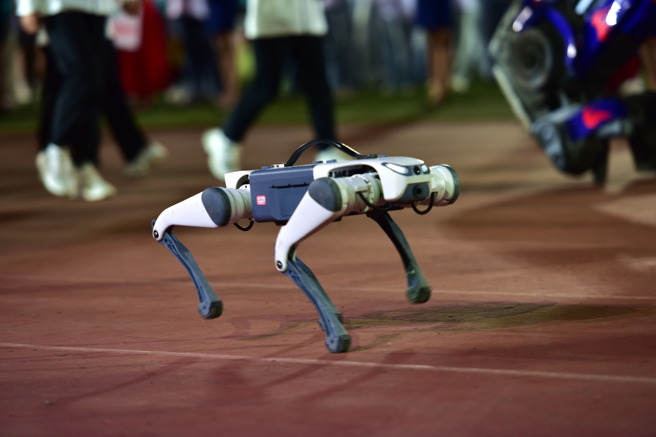 本次开幕式上,人形机器人模型擎天柱、大黄蜂以其高大威猛的形象成为了人群中的焦点,极大地激发了学生们对科技创新的兴趣,展现了计算机科学的无穷魅力。形态逼真的轮腿式平衡机器人由yl6809永利官网集团机器人与人工智能创新中心的师生自主研发,集成了多种先进的人工智能技术,具有精准的动作和灵敏的反应,能够灵活地完成各种复杂的动作,充分展示了我校在人工智能和机器人技术方面的成功探索。