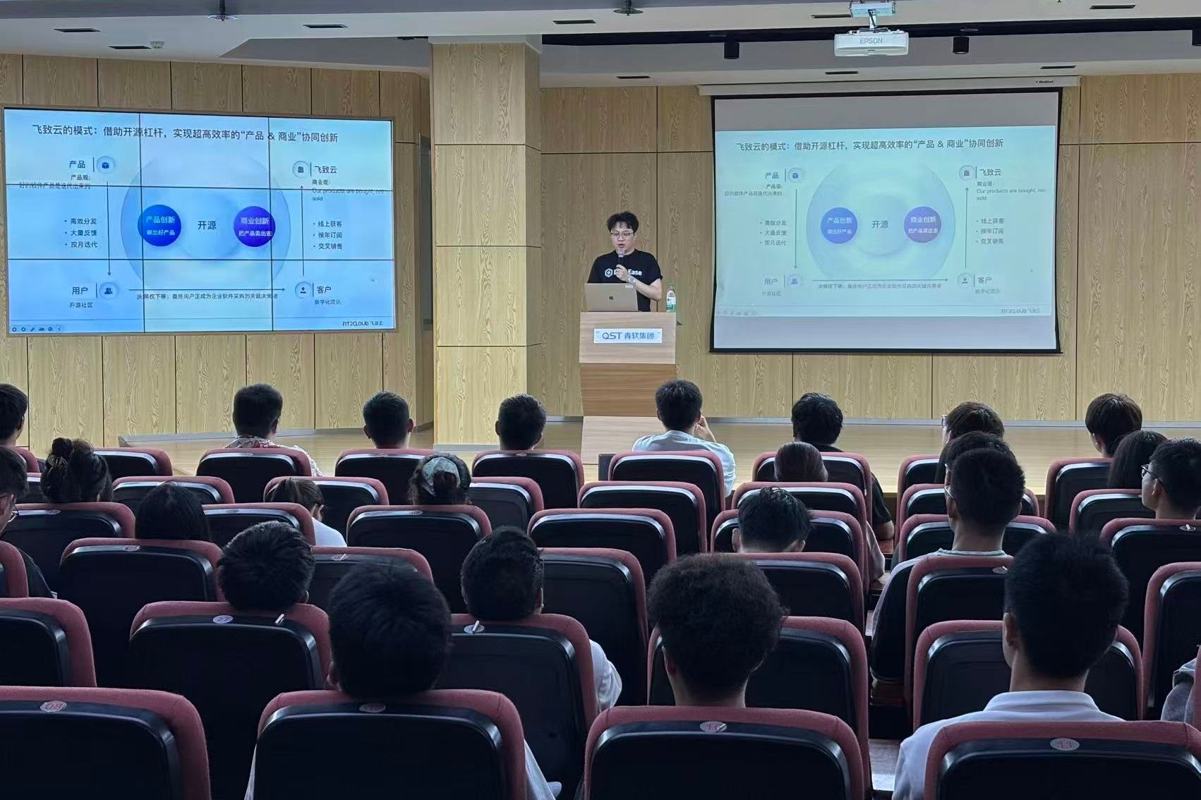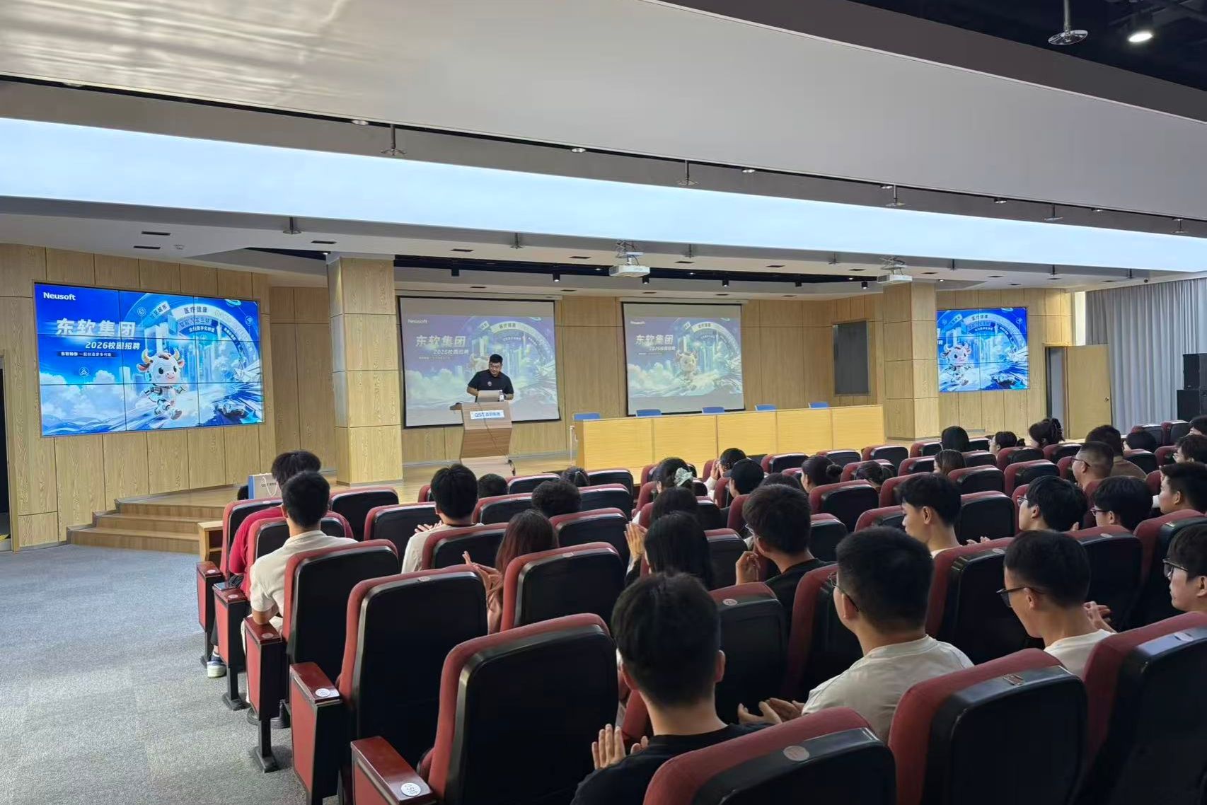 活动还设置了企业宣讲与经验分享环节。东软集团、飞致云等合作企业开展专场招聘宣讲,介绍业务发展、技术趋势与招聘计划。2021级嵌入式专业张聪容同学作为企业代表,结合自身求职经历与工作体会进行分享,为在场同学提供实用参考,增强就业信心与准备意识。