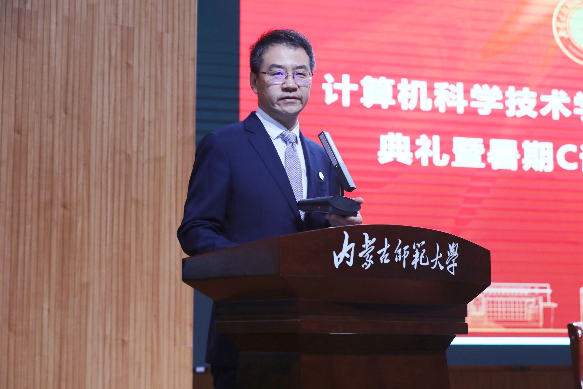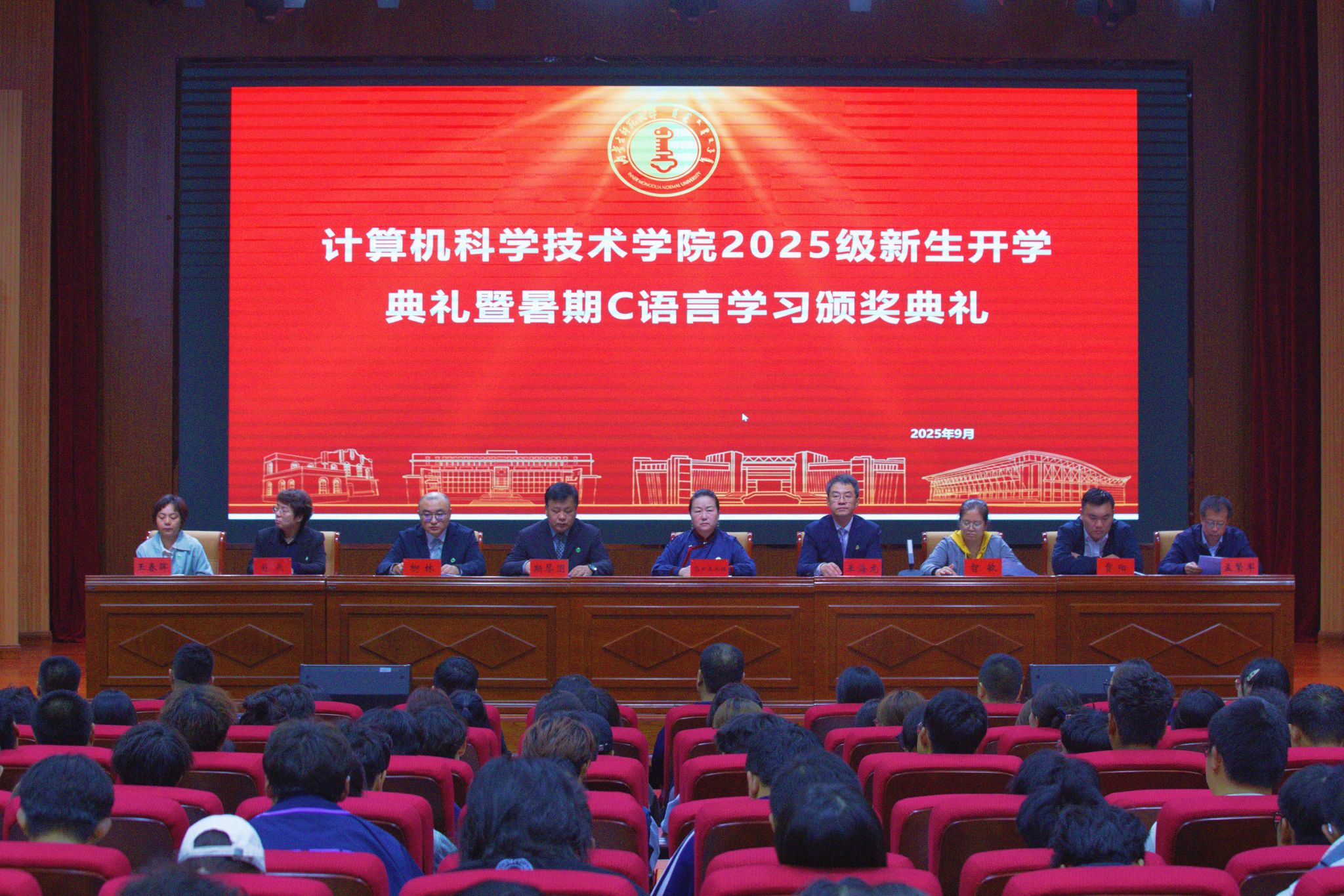 9月27日,yl6809永利官网集团举行2025级本科生开学典礼暨暑期C语言学习颁奖典礼在盛乐校区图书馆报告厅举行,共迎358名2025级本科新生。学院党委书记乌日其木格,院长王海龙,副院长斯琴图、智敏、柳林、贾阳出席开学典礼,各系部负责人、辅导员、新生班主任参加开学典礼,典礼由副院长柳林主持。