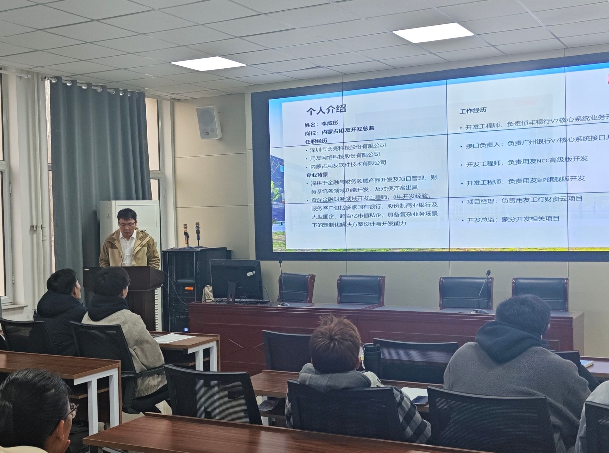 宣讲会上,内蒙古用友软件技术有限公司开发总监李威彤详细介绍了企业发展历程、核心业务、企业文化及针对网络工程、大数据专业的岗位需求和职业发展路径。现场气氛热烈,毕业生围绕岗位技能要求、实习安排、薪资待遇等问题与企业代表积极互动,并踊跃投递简历。李威彤总监对我校毕业生的专业素养和求职热情给予高度评价,表示期待更多优秀学子加入,共同推动企业技术创新与发展。