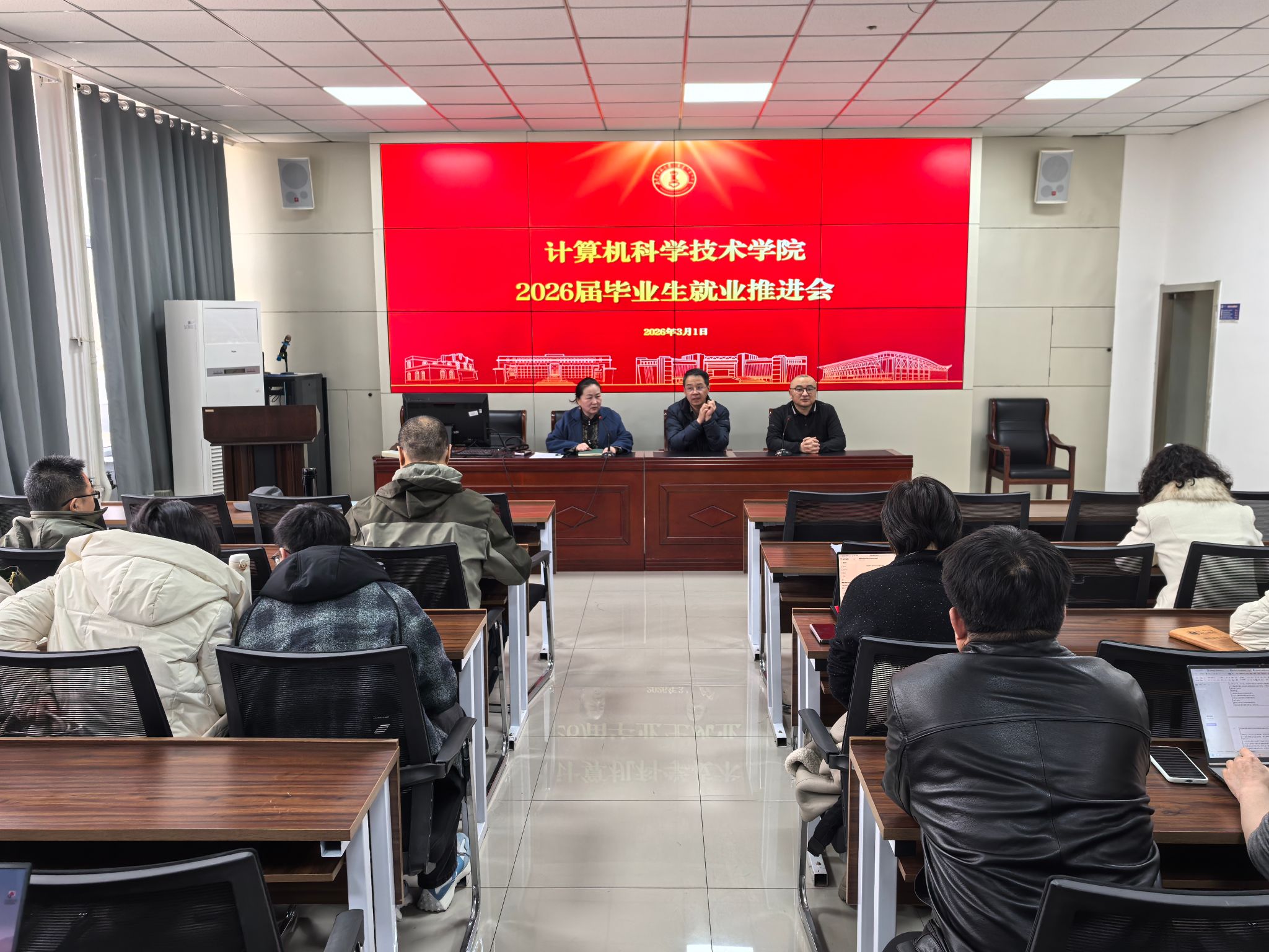 为深入贯彻落实国家关于高校毕业生就业工作的决策部署,进一步分析形势、明确任务、压实责任,全力促进2026届毕业生更加充分、更高质量就业,3月1日下午,yl6809永利官网集团在大数据楼114会议室召开2026届毕业生就业工作推进会。学院党委书记乌日其木格,院长王海龙,副院长柳林出席会议。全体系主任、辅导员、班主任参加会议。