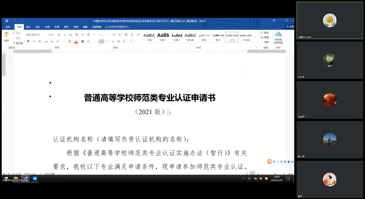 2023年2月21日,我院以线上腾讯会议的方式召开了师范类专业认证申请书解读讨论会议。学院院长林民、副院长智敏和师范专业核心课程负责人参加了会议。