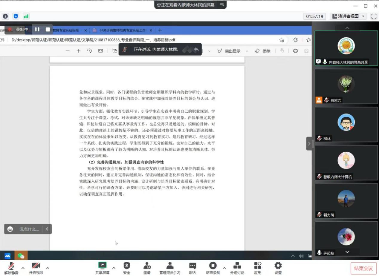 为持续推进我院师范认证工作顺利开展,2023年2月7日晚上,我院以线上腾讯会议的方式召开了师范认证自评报告筹备会议。学院院长林民、副院长智敏和自评报告各组负责人参加了会议。