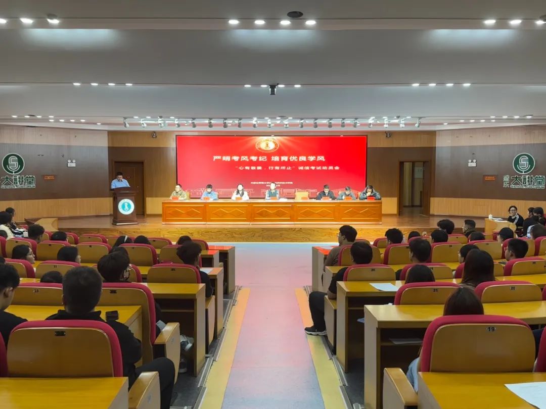 为进一步加强学院学风建设,严肃考风考纪,将诚信考试教育落到实处,营造公平公正的考试环境,12月13日下午,我院于图书馆一楼报告厅召开诚信考试动员大会。我院党委书记王海龙,辅导员及各班级班团委员、学生代表参加会议,此次会议由团总支书记赵巍伟主持。