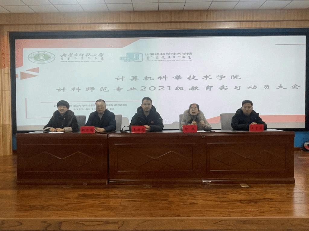2023年12月27日上午,我院召开了2021级计科师范专业教育实习动员大会。学院院长王海龙、副院长智敏、计算机系系主任朝力萌、副主任翟晔、副主任王春晖、教育实习指导老师和辅导员参加了会议。