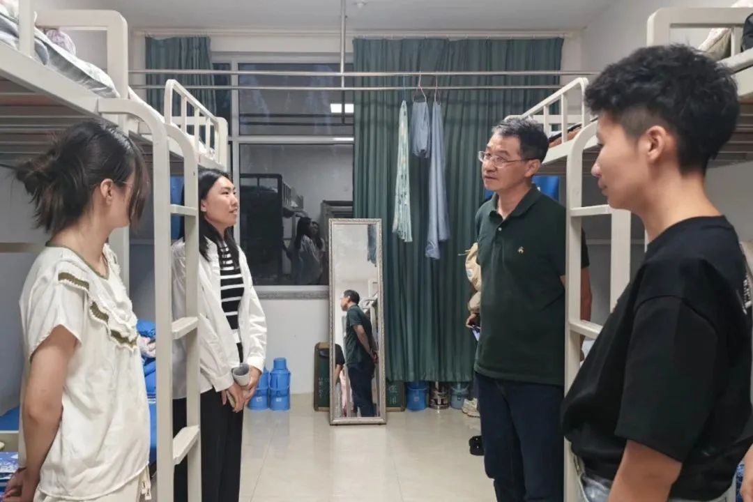 走访结束后,一行人来到新生宿舍,仔细检查了宿舍内各项设施是否完好情况是否正常,保障新生宿舍的安全、卫生,为迎接2023级新生做好充分准备。