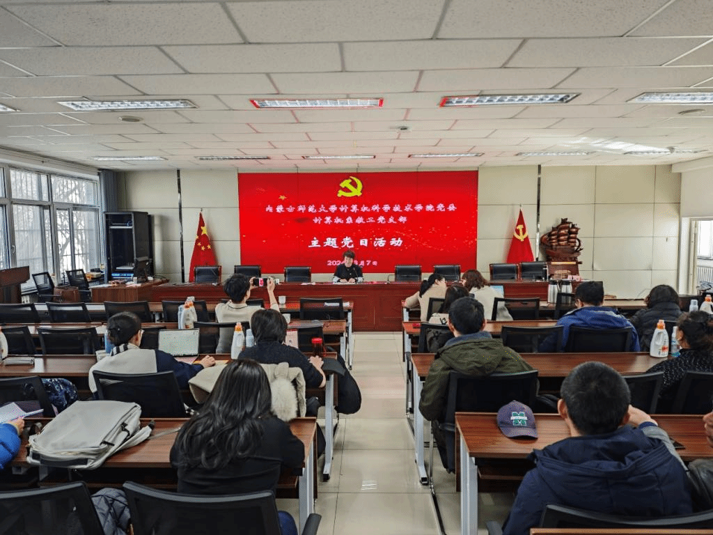3月7日下午,为圆满完成2024版培养方案修订的任务,计算机系教工党支部开展了“抓党建,促专业发展”系列主题党日活动,组织支部全体党员、计算机系教工以及专业导师围绕2022版计算机科学与技术培养方案展进行解读和讨论,活动由党支部书记苟燕同志主持,书记乌日其木格、院长王海龙、副院长智敏参加会议。