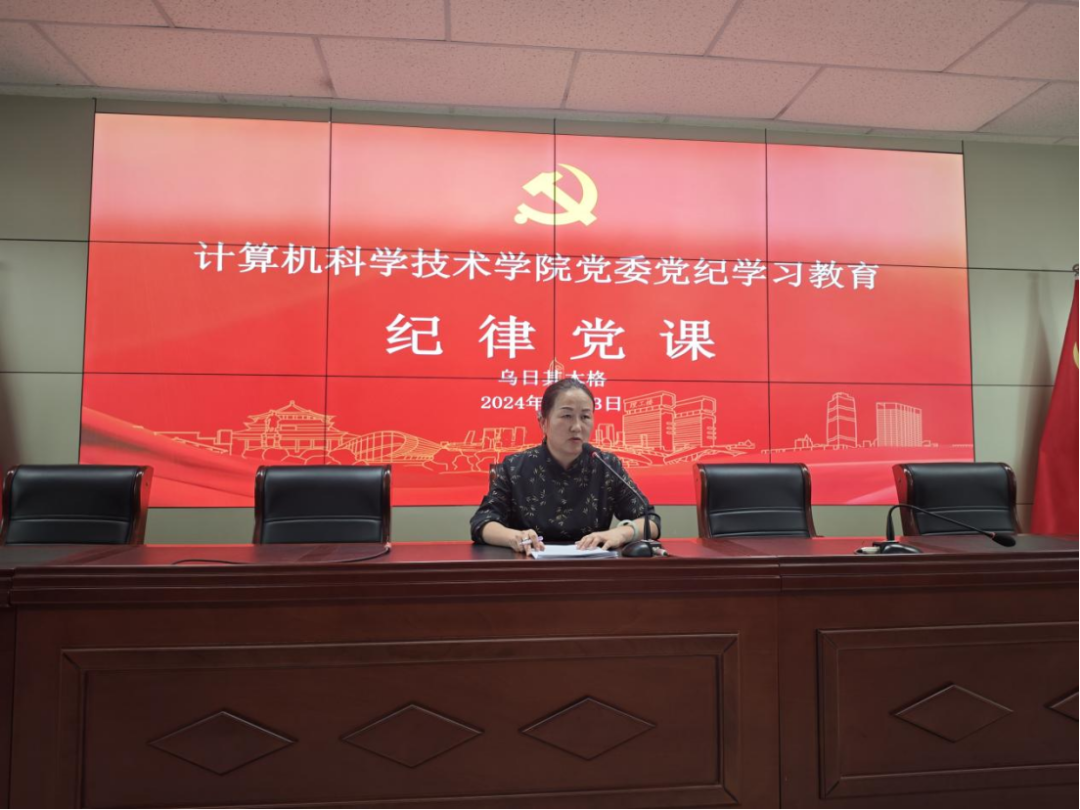 为深入学习贯彻习近平总书记关于全面加强党的纪律建设的重要论述以及关于党纪学习教育重要讲话和重要指示精神,进一步增强全体教工党员纪律意识和规矩意识,推动党纪学习教育走深走实。6月13日,yl6809永利官网集团党委书记乌日其木格同志以“学纪、知纪、明纪、守纪”为主题,在赛罕校区信息楼221报告厅为全体教职工党员讲授专题纪律党课。
