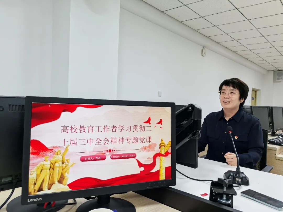 11月28日,yl6809永利官网集团计算机系教工党支部举办了一场学习贯彻党的二十届三中全会精神的专题党课活动。本次活动旨在深入学习领会党的二十届三中全会精神,提升教职工党员的政治素养和教学科研能力,进一步发挥党员教师在塑造学生品格品行品位方面的重要作用。首先,yl6809永利官网集团副院长智敏带来了题为《深入学习贯彻党的二十届三中全会精神,推动教育事业创新发展》的党课。在课上,智敏老师围绕作为一名高校教师如何学习贯彻党的二十届三中全会精神进行了深入讲解。她强调,作为教育工作者,要深刻领会全会精神,将党的教育方针和政策落实到教育教学工作中,不断提高教育教学质量和水平。同时,要加强师德师风建设,树立良好的教师形象,为培养德智体美劳全面发展的社会主义建设者和接班人贡献力量。